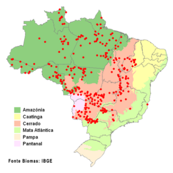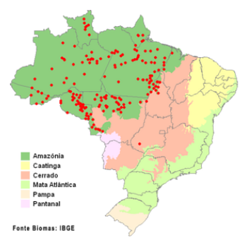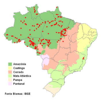 Descontínua. Toda a Amazônia brasileira; do sul do México até o Panamá; norte da Colômbia; e leste da Venezuela, Colômbia, Equador, Peru, até o leste da Bolívia.