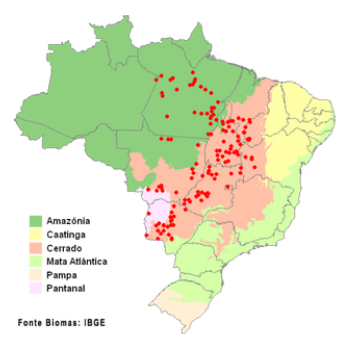 Presente sobretudo no Brasil, nos estados de Mato Grosso (Pantanal), Mato Grosso do sul, Tocantins (Cariri do Tocantins), Goiás (rio Tocantins), Minas Gerais (médio São Francisco), Bahia (alto rio Preto), sul do Piauí (Corrente) e no Maranhão, Pará (Transamazônica e leste do Estado) e Amapá (próximo ao rio Amazonas). Encontrada também na Bolívia, próximo da divisa com o Brasil e norte do Paraguai. Reportada como provável para o rio Mapori no sudeste da Colômbia (Vaupés).